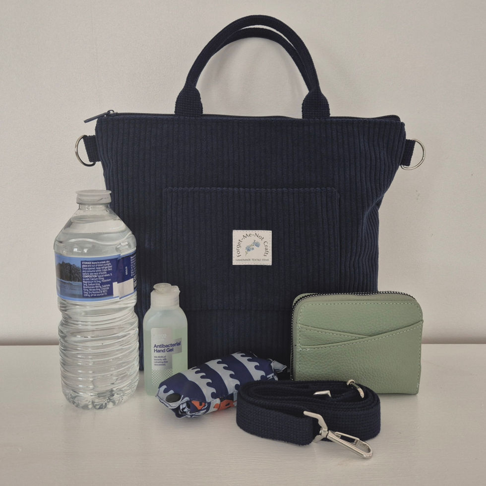 I think this is my favourite style of bag - The Day Bag- because it is so user friendly, as a day bag OR as a night time bag too. It is the perfect size for every day use, it can fit so many things in including a bottle of water and a tablet/kindle and some iPads. They are made using fabulous Corduroy materials and I also am working on some made using Harris Tweed. They all have adjustable straps, inside and outside pockets, a flat base and a zip top for security.